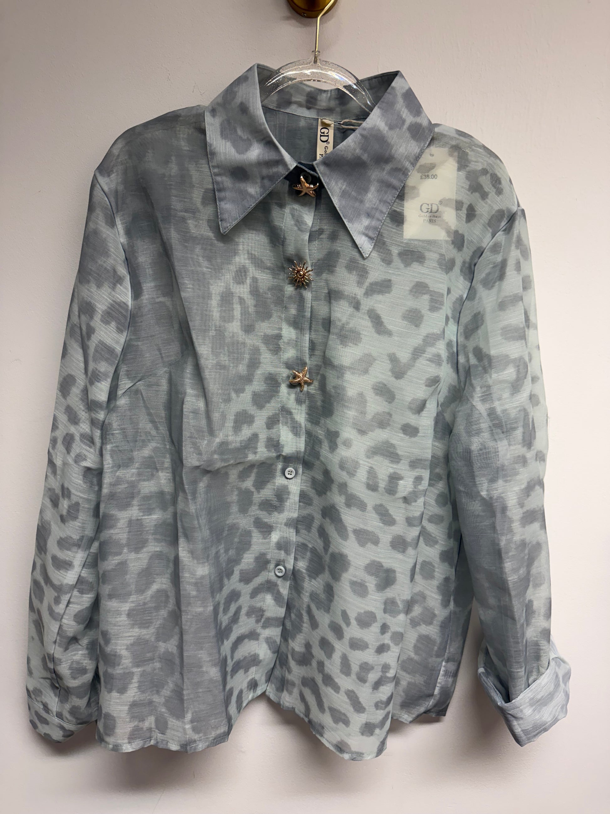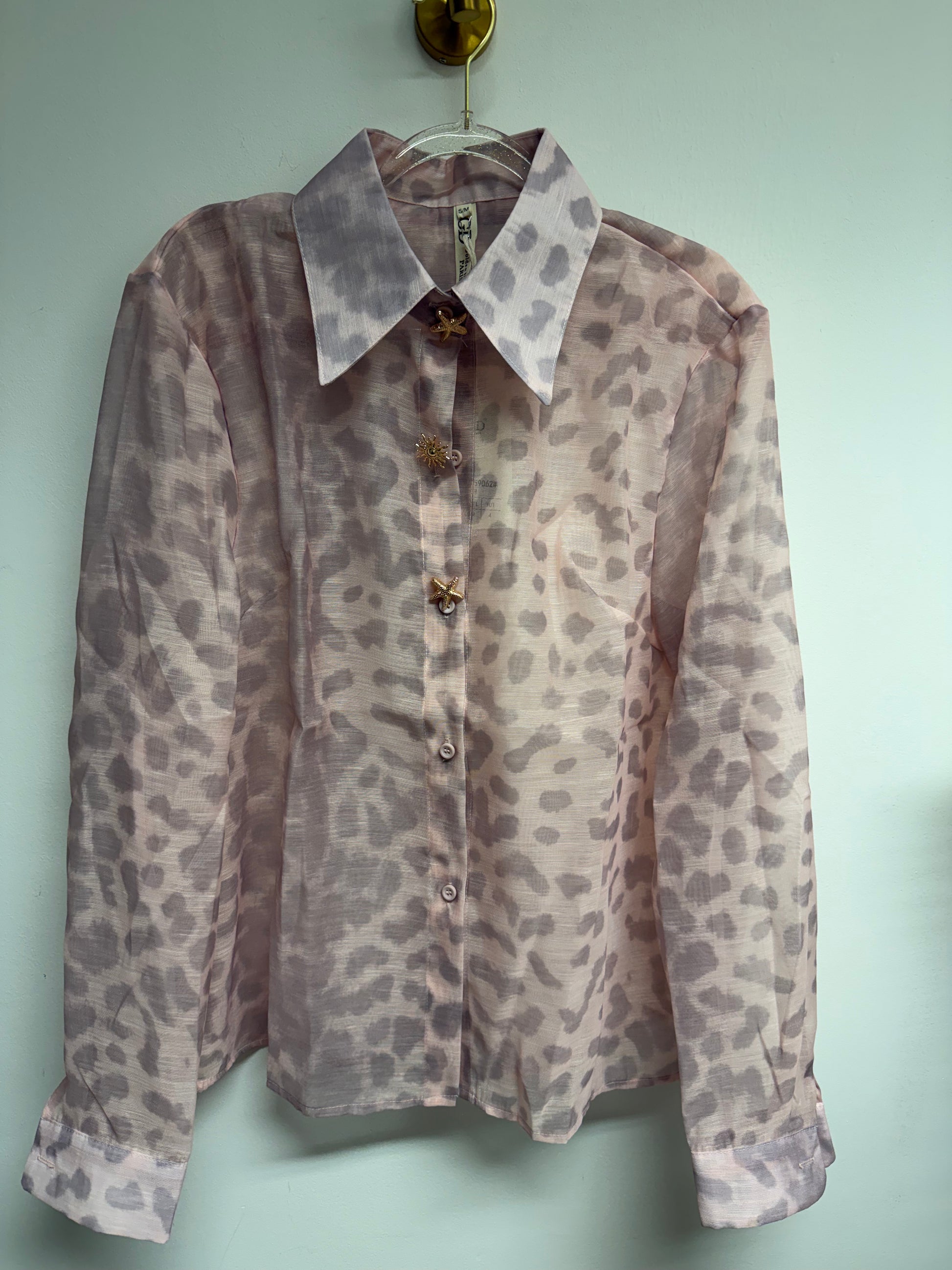 Sheer long sleeved shirt with gold hardware
